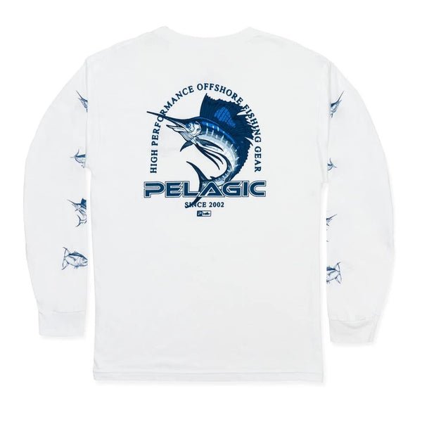 Go big or go home! Built on an ultra-comfortable premium cotton shirt, the Flying Sailfish Premium Tee features a large, bold sailfish graphic, encompassed by our heritage High Performance Offshore Fishing Gear motto and stamped with the PELAGIC logo.